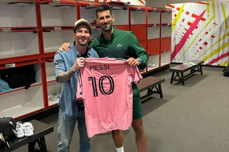 赛后,两人交换球衣,德约科维奇在社媒晒出他与梅西的合照,并写道:“很荣幸见到伟大的梅西和他的家人。谢谢你莱奥,回头见。”